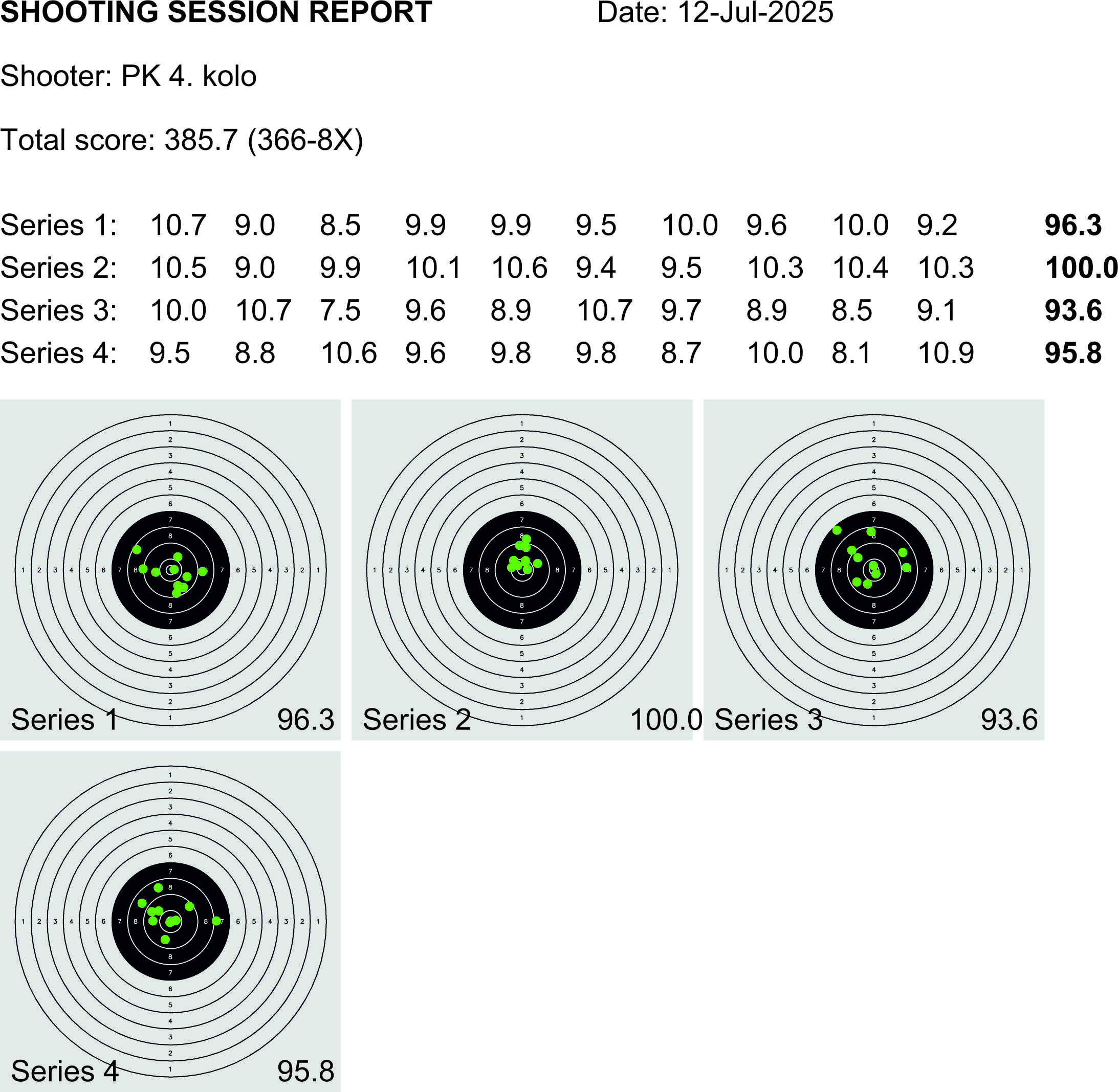 Posledný deň v mesiaci do 24:00 hod. pošlite fotky (alebo súbor v .pdf z elektronického terčového zariadenia napr. InBand, SIUS Ascor, Scatt a pod.) vašich vyhodnotených terčov na adresu pavel.kostolnik@sportcool.sk